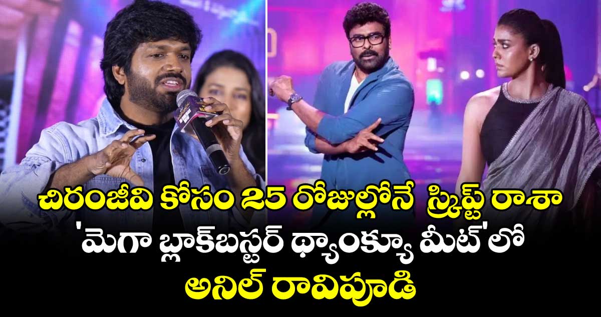 ఈ వేడుకలో దర్శకుడు అనిల్ రావిపూడి మాట్లాడుతూ ‘మన శంకరవరప్రసాద్గారు’ గురించి ఆసక్తికర విషయాలను పంచుకున్నారు. సాధారణంగా నా సినిమాలకు స్క్రిప్ట్ రాయడానికి 3 నెలలకు పైగా సమయం పడుతుంది. కానీ, చిరంజీవి మీద ఉన్న అభిమానం, ఆయన బాడీ లాంగ్వేజ్పై ఉన్న అవగాహన వల్ల కేవలం 25 రోజుల్లోనే పూర్తి స్క్రిప్ట్ సిద్ధం చేశానని తెలిపారు. మొదటి భాగం 15 రోజులు, సెకండాఫ్ 10 రోజుల్లో రాశాను. చిరంజీవి వెండితెరపై నవరసాలను పండించగల గొప్ప నటుడు. ఆయన గ్రేస్, బాసిజం, ఎమోషన్స్ తెలిసిన వాడిని కాబట్టి, ఆయా సన్నివేశాల్లో ఖాళీలను పూరిస్తూ వెళ్లానంతే అని చెప్పుకొచ్చారు. 85 రోజుల షూటింగ్ పీరియడ్ తన జీవితంలో మర్చిపోలేని అనుభూతిని ఇచ్చిందని అనిల్ ఎమోషనల్ అయ్యారు.