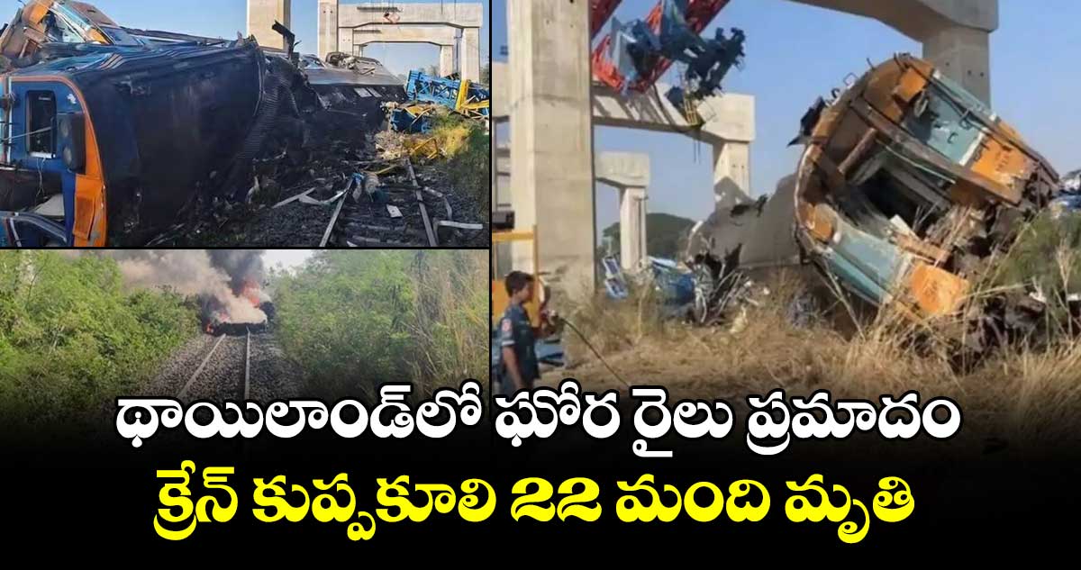 థాయిలాండ్లో బుధవారం ఉదయం పెను విషాదం చోటుచేసుకుంది. చైనా మద్దతుతో జరుగుతున్న ఒక భారీ రైల్వే ప్రాజెక్టు వద్ద క్రేన్ కుప్పకూలడంతో.. అటుగా వెళ్తున్న ప్యాసింజర్ రైలు పట్టాలు తప్పి ఘోర ప్రమాదానికి గురైంది. ఈ ప్రమాదంలో కనీసం 22 మంది మరణించగా.. 30 మందికి పైగా తీవ్రంగా గాయపడ్డారు.