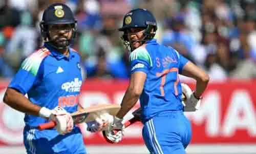 రాజ్కోట్: రెండో వన్డేలోనూ టీమిండియా ఓపెనర్, హిట్ మ్యాన్ రోహిత్ శర్మ నిరాశపర్చాడు. కేవలం 24 పరుగులు మాత్రమే చేసి పెవిలయన్ కు చేరాడు. మూడు వన్డేల సిరీస్లో భాగంగా నిరంజన్ షా స్టేడియం వేదికగా న్యూజిలాండ్ జట్టుతో జరుగుతున్న రెండో వన్డే మ్యాచ్లో టాస్ ఓడి ముందుగా బ్యాటింగ్ చేపట్టిన భారత్ కు శుభారంభం లభించింది. మరో ఓపెనర్ శుభ్ మన్ గిల్ వేగంగా బ్యాటింగ్ చేస్తుండటంతో జట్టు స్కోరు పరుగులు పెడుతోంది. ఈ క్రమంలో రోహిత్ భారీ షాట్ కు యత్నించి వికెట్ చేజార్చుకున్నాడు. దీంతో 71 పరుగుల భాగస్వామ్యానికి తెరపడింది.