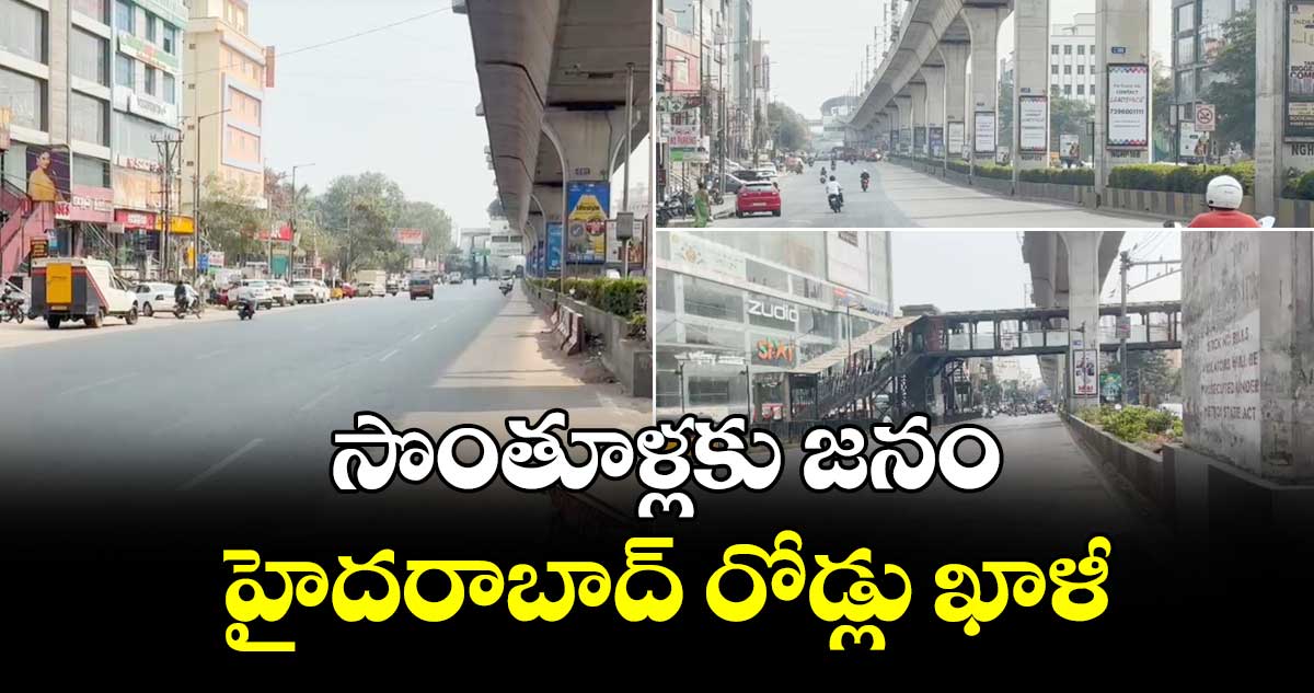 హైదరాబాద్ నుంచి పలు ప్రాంతాల ప్రజలు సొంతూళ్లకు వెళ్లిపోవడంతో నగరంలోని రోడ్లన్నీ ఖాళీగా కనిపిస్తున్నాయి. నిత్యం ట్రాఫిక్ రద్దీతో ఉండే రోడ్లన్నీ ఒక్కసారిగా నిర్మానుష్యంగా మారిపోయాయి. సంక్రాంతి పండుగ సందర్భంగా గత మూడు రోజులుగా భారీ సంఖ్యలో ప్రజలు తమ సొంతూళ్లకు వెళుతున్నారు.