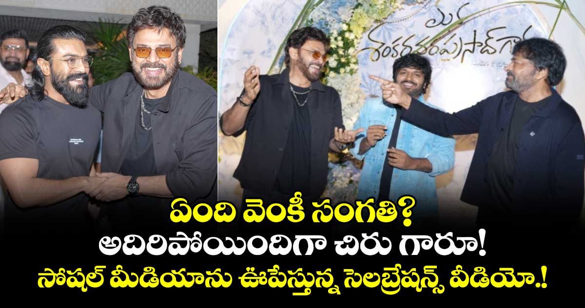సినిమా బ్లాక్బస్టర్ విజయం సాధించడంతో చిత్రబృందం ప్రత్యేకంగా సక్సెస్ సెలబ్రేట్ చేసుకుంది.. ఈ వేడుకలో చిరంజీవి, వెంకటేశ్లతో పాటు మెగా పవర్ స్టార్ రామ్ చరణ్ కూడా పాల్గొని సందడి చేశారు. అందరూ కలిసి భారీ కేక్ కట్ చేసి ఒకరికొకరు శుభాకాంక్షలు తెలుపుకున్నారు. ఈ వేడుకలో హైలైట్ ఏంటంటే.. సినిమాలో హిట్ అయిన ఒక పాటను గుర్తుచేస్తూ చిరంజీవి తనదైన శైలిలో “ఏంది వెంకీ సంగతి?” అని అడిగారు.