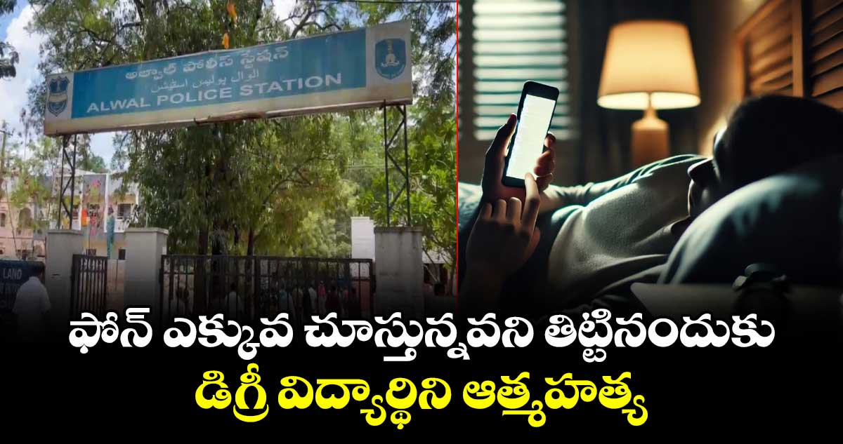 హైదరాబాద్: అల్వాల్ పోలీస్ స్టేషన్ పరిధిలోని మచ్చ బొల్లారం గోపాల్ నగర్లో విషాదం నెలకొంది. ఫోన్ ఎక్కువ చూస్తున్నావని తల్లి మందలించడంతో డిగ్రీ విద్యార్థిని ఆత్మహత్యకు పాల్పడింది. వివరాల ప్రకారం.. రుతిక (19) అనే యువతి లయోలా డిగ్రీ కళాశాలలో ఫస్ట్ ఇయర్ చదువుతోంది. అయితే.. తరచూ ఫోన్ వాడుతున్నావని రుతికను వాళ్ల తల్లి మందలించింది. దీంతో తీవ్ర మనస్థాపానికి గురైన రుతిక ఇంట్లో ఎవరూ లేని సమయంలో సీలింగ్ ఫ్యాన్కు ఉరి వేసుకుని ఆత్మహత్యకు పాల్పడింది.