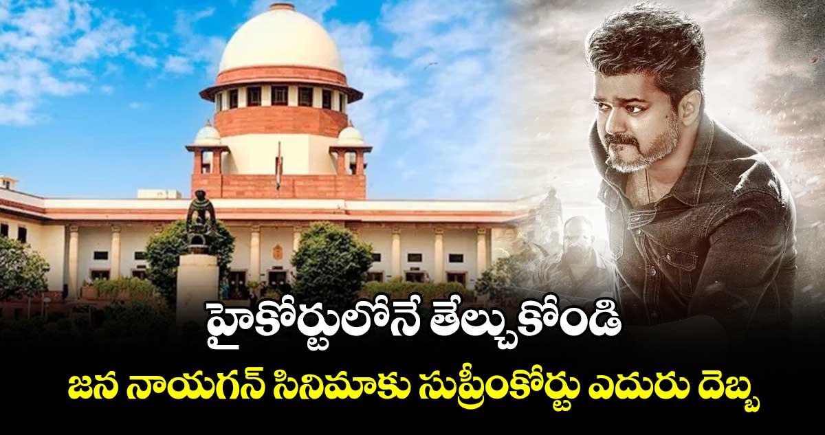 న్యూఢిల్లీ: విజయ్ దళపతి నటించిన జన నాయగన్ మూవీకి సుప్రీం కోర్టులో నిరాశ ఎదురైంది. ఈ సినిమా రిలీజ్ వ్యవహరంలో జోక్యం చేసుకునేందుకు దేశ అత్యున్నత న్యాయస్థానం నిరాకరించింది. జన నాయగన్ మూవీకి సెన్సార్ సర్టిఫికేట్ ఇచ్చేలా సీబీఎఫ్సీకి ఆదేశాలు ఇచ్చేందుకు సుప్రీం కోర్టు అంగీకరించలేదు. మద్రాస్ హైకోర్ట్ డివిజన్ బెంచ్లోనే తేల్చుకోవాలని మూవీ యూనిట్కు సూచించింది. 2026, జనవరి 20వ తేదీలోగా పిటిషన్పై నిర్ణయం తీసుకోవాలని హైకోర్టుకు సూచించింది సుప్రీంకోర్టు. ఈ పిటిషన్పై విచారణ పూర్తి అయ్యే వరకు సర్టిఫికెట్ను నిలిపివేయాలని సీబీఎఫ్సీని ఆదేశించింది.
