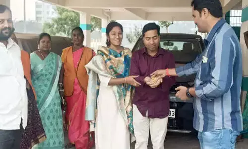 జివిఎంసి పారిశుధ్య కార్మికురాలు మానవత్వం చాటుకున్నారు. రోడ్డుపై తనకు దొరికిన బంగారాన్ని బాధితులకు అప్పగించిన సంఘటన విశాఖ పట్నంలోని మదధురవాడ పరిధి పిఎం పాలెంలో చోటుచేసుకుంది. వివరాలలోకి వెలితే.. పారిశుధ్య కార్మికురాలు అరుణ, రాము, స్వచ్ఛ వామనం డ్రైవర్ ప్రసాద్ బుధవారం ఉదయం విధులు నిర్వహించారు. ఆ సమయంలో వారికి రోడ్డుపై రూ.5 లక్షల విలువైన 4.5 తులాల రెండు బంగారు నెక్లెస్ లు దొరికాయి. దీంతో వారు పోలీసులకు సమాచారం అందించారు సమచారం మేరకు పోలీసులు ఘటనాస్థలికి చేరుకొని వివారాలు అడిగి తెలుసుకున్నారు. విచారణ లో భాగంగా పిఎం పాలెంలోని రాజగోపాల్ రెసిడెన్సీలో ఉంటున్న రామచంద్రరావు, సౌమ్యకి చెందినవిగా పోలీసులు గుర్తించారు. గురువారం ఉదయం పారిశుధ్య కార్మికుల సమక్షంలో బంగారు ఆభరణాలను పోలీసులు వారికి అప్పగించారు.