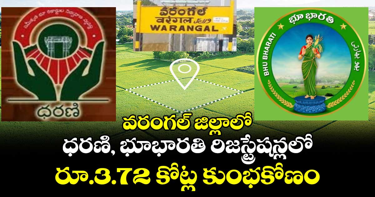 వరంగల్ జిల్లాలో భారీ కుంభకోణం జరిగింది. ధరణి, భూభారతి రిజస్ట్రేషన్లలో ప్రభుత్వ ఆదాయానికి గండికొట్టిన 15 మంది నిందితుల అరెస్టు చేశారు పోలీసులు. మరో 9 మంది నిందితులు పరారీలో ఉన్నారు. మొత్తం మూడు కోట్ల 72 లక్షల రూపాయల కుంభకోణం జరిగినట్టు శుక్రవారం (జనవరి 16) పోలీసులు వెల్లడించారు.