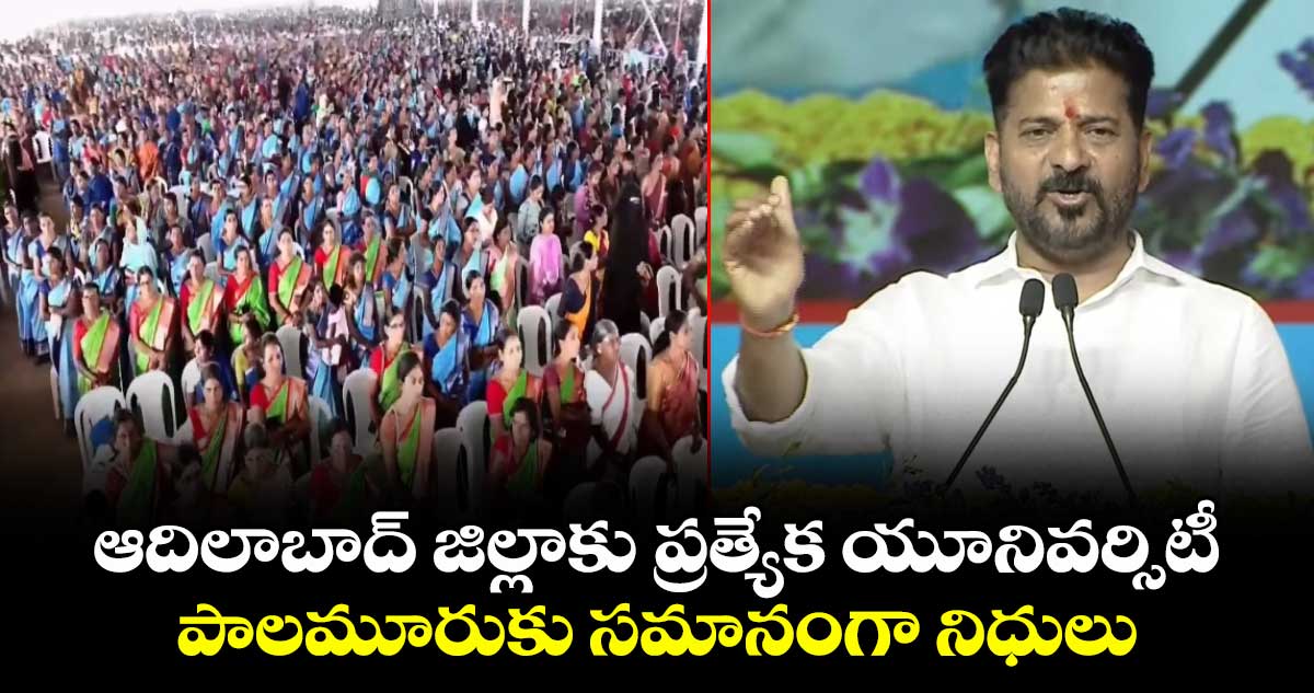 ఉమ్మడి ఆదిలాబాద్ జిల్లా పర్యటనలో ఉన్న సీఎం రేవంత్.. జిల్లాకు వరాల జల్లులు కుర్పించారు. ఆదిలాబాద్ జిల్లాకు ప్రత్యేక యూనివర్సిటీని మంజూరు చేస్తున్నట్లు చెప్పారు. బాసర త్రిపుల్ ఐటీలో యూనివర్సిటీ ఏర్పాటు చేస్తున్నామని అన్నారు. శుక్రవారం (జనవరి 16) జిల్లా పర్యటనలో భాగంగా చనాకా కొరాటా ప్రాజెక్టును ప్రారంభించిన సీఎం.. నిర్మల్ జిల్లా కేంద్రంలోని ఎన్టీఆర్ స్టేడియంలో ఏర్పాటు చేసిన బహిరంగ సభలో మాట్లాడారు.