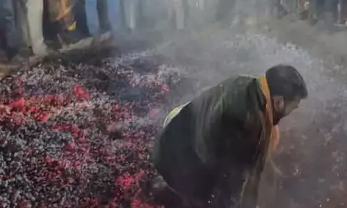 భీమదేవరపల్లి: హనుమకొండ జిల్లా భీమదేవరపల్లి మండలం కొత్తకొండ వీరభద్ర స్వామి బ్రహ్మోత్సవాల సందర్భంగా అపశృతి చోటుచేసుకుంది. ఈ వేడుకల సందర్భంగా ఆలయంలో వేదమంత్రాలు, మంగళవాయిద్యాల నడుమ అర్చకులు ఘనంగా అగ్నిగుండాలను నిర్వహించారు. భక్తులు అగ్ని గుండాలను దాటుతుండగా కరీంనగర్కు చెందిన వెంకటేశ్ అనే వ్యక్తి అందులో పడిపోయాడు. అతడు స్వల్పంగా గాయపడడంతో ఆస్పత్రికి తరలించారు. అగ్ని గుండాలను దాటేటప్పుడు భక్తులకు నిర్వహకులు పలు సూచనలు చేశాడు. ఒక్కొక్కరిని ఒంటరిగా పంపించి అగ్నిగుండాలను దాటించారు.