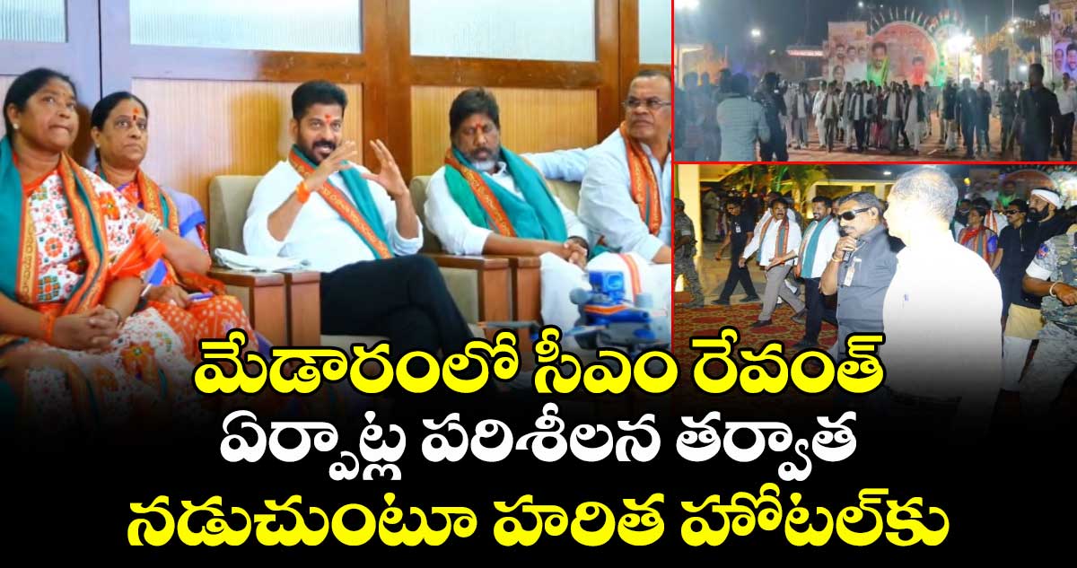 ప్రభుత్వం ఎంతో ప్రతిష్టాత్మకంగా నిర్వహిస్తున్న మేడారం జాతార ఏర్పాట్లను సీఎం రేవంత్ పరిశీలించారు. ఆదివారం (జనవరి 18) సాయంత్రం మేడారం వెళ్లిన సీఎం.. బస్సులో మంత్రులతో కలిసి వెళ్లి ఏర్పాట్లను గురించి తెలుసుకున్నారు.