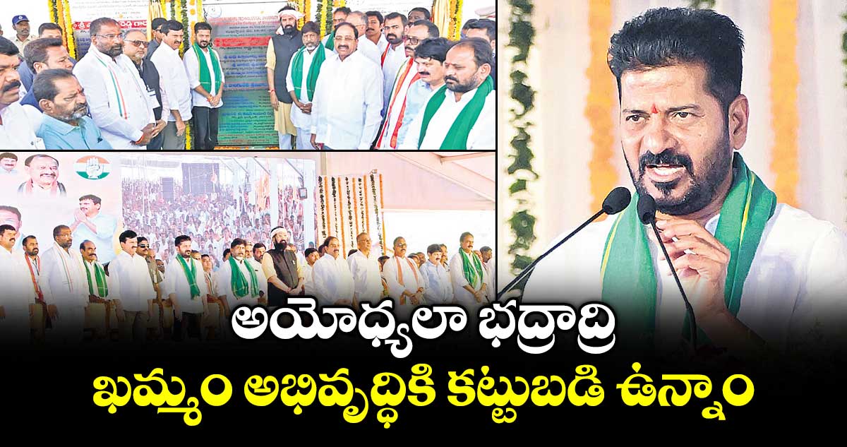 ఖమ్మం/ ఖమ్మం రూరల్, వెలుగు: ఖమ్మం జిల్లా ప్రజలు తనకెప్పుడూ అండగా ఉన్నారని, జిల్లా అభివృద్ధికి రాష్ట్ర ప్రభుత్వం కట్టుబడి ఉందని ముఖ్యమంత్రి రేవంత్ రెడ్డి అన్నారు. గత 20 ఏండ్లుగా జిల్లాతో తనకు రాజకీయ అనుబంధం ఉందని చెప్పారు. భద్రాచలం రాముడిని గత ముఖ్యమంత్రి మోసం చేశారని, భద్రాచలం ఆలయాన్ని అయోధ్య ఆలయంలా నిర్మిస్తామని హామీ ఇచ్చారు. ప్రజా ప్రభుత్వం అధికారంలోకి రాగానే పొంగులేటి శ్రీనివాస రెడ్డి నాయకత్వంలో 4.5 లక్షల ఇందిరమ్మ ఇండ్లను మంజూరు చేసి భద్రాచలంలో శ్రీరామ చంద్రమూర్తి సాక్షిగా ప్రారంభించామన్నారు.