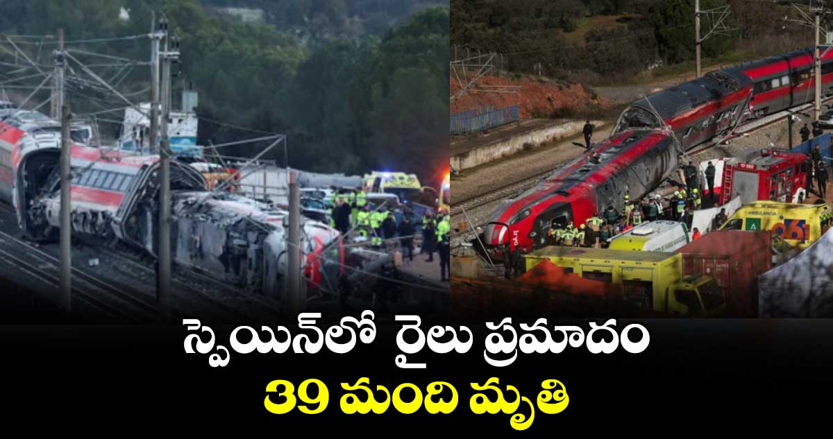అదాముజ్: దక్షిణ స్పెయిన్లో ఘోర రైలు ప్రమాదం జరిగింది. ఈ ఘటనలో సుమారుగా 39 మంది మృతి చెందారు. హై స్పీడ్ రైలు ఒకటి పట్టాలు తప్పగా.. అదే సమయంలో మరో రైలు ఢీ కొట్టడంతో ప్రమాద తీవ్రత పెరిగింది. ఈ ప్రమాదంలో 159 మంది గాయపడ్డారు. రంగంలోకి దిగిన అధికారులు సహాయక చర్యలను ముమ్మరం చేశారు. క్షతగాత్రులను వెంటనే ఆసుపత్రికి తరలించారు. ఆదివారం రాత్రి 7:45 గంటలకు మలగా నుంచి స్పెయిన్ రాజధాని మాడ్రిడ్కు సుమారు 300 మంది ప్రయాణికులతో వెళ్తున్న హై-స్పీడ్ రైలు వెనుక భాగం అదాముజ్ సమీపంలో పట్టాలు తప్పింది. అదే సమయంలో ఎదురుగా మాడ్రిడ్ నుంచి హుయెల్వా పట్టణానికి వెళ్తున్న మరో రైలును బలంగా ఢీకొట్టింది. రెండో రైలులో దాదాపు 200 మంది ప్రయాణికులు ఉండగా, ఆ రైలు ముందు భాగం ఈ ప్రమాదంలో తీవ్రంగా దెబ్బతిన్నదని స్పెయిన్ రవాణా శాఖ మంత్రి ఆస్కార్ ప్యూంటె తెలిపారు. రెండో రైలుకు చెందిన మొదటి రెండు కోచ్లు పట్టాలు తప్పి, సుమారు 13 అడుగుల లోతున్న లోయలో పడిపోయాయి. మరణించిన వారిలో ఎక్కువ మంది ఈ కోచ్లలో ఉన్నవారేనని ప్యూంటె పేర్కొన్నారు.