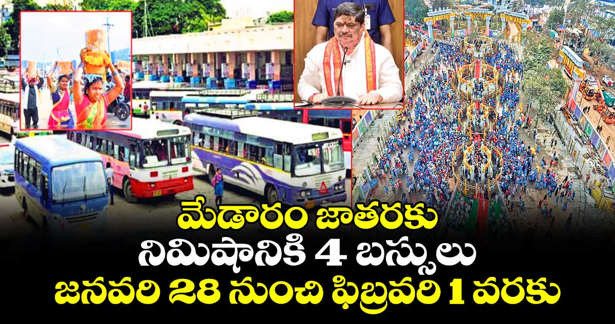 మహిళలకు ఉచిత ప్రయాణం ఉంటుందని వివరించారు. మేడరం వెళ్ళేటప్పుడు బస్సులు నిండుతాయి… వచ్చేటప్పుడు ఖాళీగా బస్సులు వస్తాయని, ఇందుకోసం ఫ్రీ బస్సు వర్తించని వారి వద్ద నుంచి 50% చార్జీలు అదనంగా వసూలు చేస్తామన్నారు. ఆర్టీసీ బస్సుల కోసం 50 క్యూలైన్స్ 9 కిలోమీటర్లు ఏర్పాటు చేశా మన్నారు.
