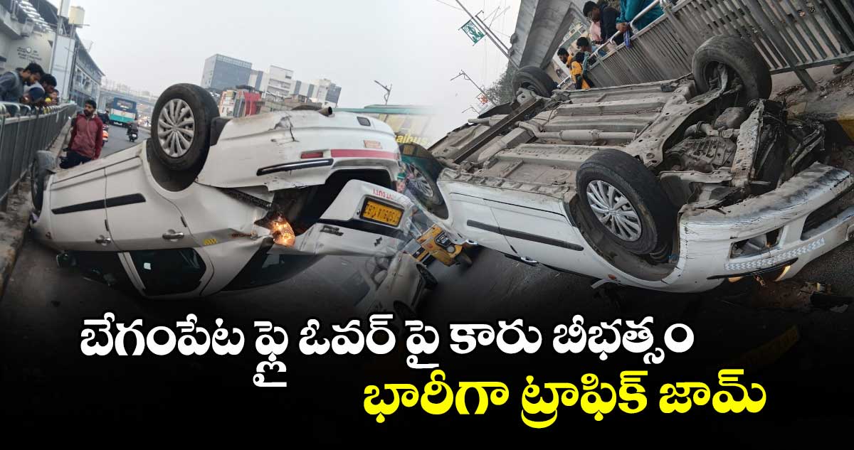 కారు ప్రమాదంతో బేగంపేట ఫ్లై ఓవర్ పై భారీగా ట్రాఫిక్ జామ్ అయ్యింది.ఆఫీసులకు వెళ్లే సమయం కావడంతో వాహనదారులు ఇబ్బంది పడుతున్నారు. ఘటనా స్థలానికి వచ్చిన పోలీసులు ప్రమాదానికి గురైన కారును జేసీబీ సాయంతో పక్కకు తొలగించి ట్రాఫిక్ క్లియర్ చేస్తున్నారు. కేసు నమోదు చేసి దర్యాప్తు చేస్తున్నారు.