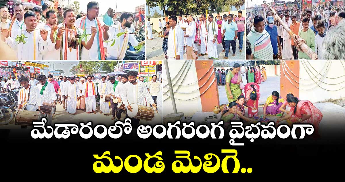 తాడ్వాయి : మేడారం సమ్మక్క సారలమ్మ దేవతల మండ మెలిగే పండుగను పూజారులు – అంగరంగ వైభవంగా నిర్వహించారు. ఇవాళ ఉదయాన్నే మేడారం సమ్మక్క దేవత పూజరులు సిద్దబోయిన, కొక్కెర, మల్లెల, వంశీయులు, నె రాలమ్మ పూజారులు కాక వంశీయులు వారి వారి ఇళ్లను శుభ్రం చేసుకున్నారు. అనంతరం పిల్లాపాపలతో సహా పవిత్ర స్నానాలు చేశారు. సమ్మక్క పూజారులు మేడారం గుడికి సారల మ్మపూజారులు కన్నెపెళ్లి గుడికి వెళ్లి గుడులను పవిత్ర గోదావరి జలంతో శుద్ధి చేశారు.