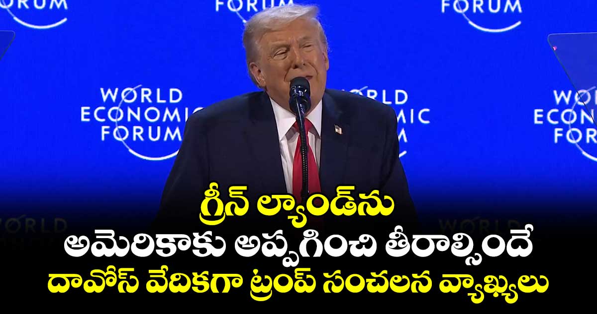 బెర్న్: గ్రీన్ ల్యాండ్ను అమెరికాకు అప్పగించి తీరాల్సిందేనని యూఎస్ ప్రెసిడెంట్ డొనాల్డ్ ట్రంప్ పునరుద్ఘాటించారు. గ్రీన్ ల్యాండ్ భూభాగాన్ని డెన్మార్ కాపాడలేదని.. ఒక్క అమెరికా మాత్రమే గ్రీన్ ల్యాండ్ను రక్షించగలదని బీరాలు పలికారు. బుధవారం (జనవరి 21) వరల్డ్ ఎకనామిక్ ఫోరం సదస్సులో ట్రంప్ పాల్గొన్నారు. ఆరు సంవత్సరాల తర్వాత దావోస్ సదస్సుకు హాజరైన ట్రంప్ ప్రపంచ ఆర్థిక వేదికను ఉద్దేశించి ప్రసంగించారు.