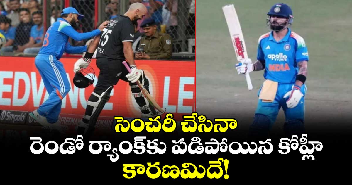 ఐసీసీ బుధవారం (జనవరి 21) ప్రకటించిన లేటెస్ట్ ర్యాంకింగ్స్ లో కోహ్లీ తన నెంబర్ వన్ స్థానాన్ని కోల్పోయాడు. రెండో స్థానంలో ఉన్న న్యూజిలాండ్ బ్యాటర్ డారిల్ మిచెల్.. కోహ్లీని వెనక్కి నెట్టి అగ్రస్థానికి దూసుకొచ్చాడు. దీంతో కోహ్లీ నెంబర్ వన్ ర్యాంక్ ఒక్క వారానికే పరిమితమైంది. గత వారంలో ఐసీసీ బుధవారం (జనవరి 14) ప్రకటించిన ర్యాంకింగ్స్ లో కోహ్లీ నెంబర్ వన్ స్థానానికి దూసుకొచ్చాడు. రెండో స్థానంలో ఉన్న న్యూజిలాండ్ బ్యాటర్ డారిల్ మిచెల్ కోహ్లీ కంటే కేవలం ఒక్క రేటింగ్ పాయింట్ మాత్రమే వెనకపడి ఉన్నాడు.