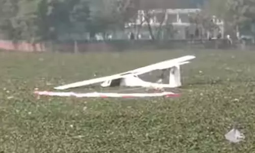 ఉత్తరప్రదేశ్ ప్రయాగ్రాజ్ నగర శివారులోని చెరువులో మిలటరీ శిక్షణ విమానం కూలిపోయింది. ఇందులోని ఇద్దరు పైలట్లు స్వల్ప గాయాలతో సురక్షితంగా బయటపడ్డారు. విద్యావాహిని పాఠశాల సమీపంలో ఈ సంఘటన జరిగింది. ఈ సమాచారం అందగానే ఆర్మీ ఉన్నతాధికారులు సంఘటన స్థలానికి చేరుకున్నారు. సిబ్బంది సహాయక చర్యలు చేపట్టింది. చెరువు నీటిలో ఎయిర్ క్రాఫ్ట్ మునిగి పోగా స్థానికులు పైలట్లను బయటకు తీశారు. సాంకేతిక లోపం కారణం గానే ఈ ప్రమాదం జరిగినట్టు అధికారులు వెల్లడించారు. సహాయక చర్యలు ఇంకా కొనసాగుతున్నాయి. ప్రస్తుతం బురద నీటిలో ఉన్న విమాన శకలాలను వెలికి తీసే ప్రక్రియను బృందాలు ప్రారంభించాయి. ఈ సంఘటనపై దర్యాప్తునకు ఆర్మీ ఉన్నతాధికారులు ఆదేశాలు జారీ చేశారు.