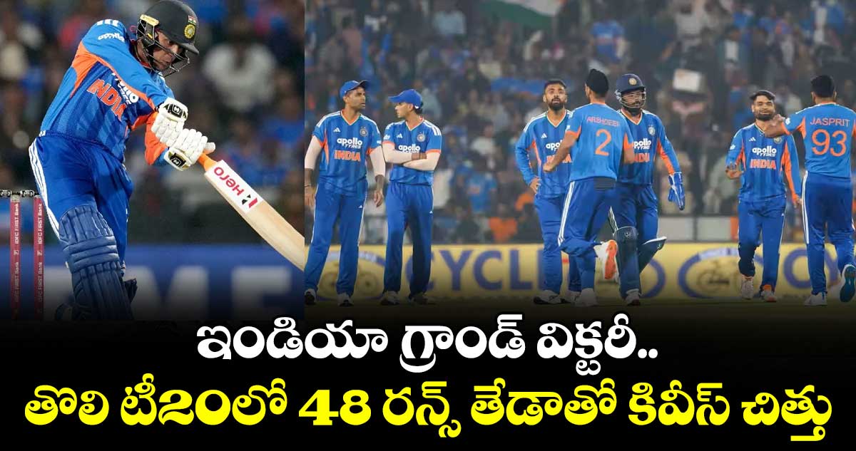 ఓపెనర్ అభిషేక్ శర్మ (35 బాల్స్లో 5 ఫోర్లు, 8 సిక్సర్లతో 84) విధ్వంసకర బ్యాటింగ్తో ఐదు టీ20ల సిరీస్లో బుధవారం జరిగిన తొలి మ్యాచ్లో 48 రన్స్ తేడాతో ఇండియా కివీస్ను చిత్తు చేసింది. ఫస్ట్ బ్యాటింగ్కు దిగిన ఇండియా 20 ఓవర్లలో 238/7 స్కోరు చేసింది. చేజింగ్లో కివీస్ 20 ఓవర్లలో 190/7 రన్స్ చేసి ఓడింది.
