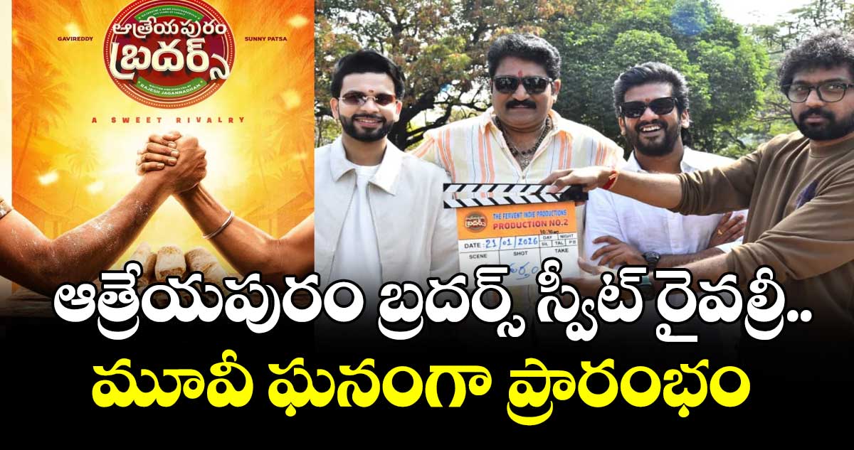 రాజీవ్ కనకాల, గవిరెడ్డి, సన్నీ పత్సా లీడ్ రోల్స్లో రాజేష్ జగన్నాధం తెరకెక్కిస్తున్న చిత్రం ‘ఆత్రేయపురం బ్రదర్స్’. ఏ స్వీట్ రైవల్రీ అనేది ట్యాగ్ లైన్. బుధవారం అన్నపూర్ణ స్టూడియోస్లో ఈ చిత్రాన్ని ప్రారంభించారు. ముహూర్తపు సన్నివేశానికి దర్శకుడు వశిష్ట క్లాప్ కొట్టగా మరో దర్శకుడు విజయ్ కనకమేడల కెమెరా స్విచ్ ఆన్ చేశారు. దర్శకులు ప్రవీణ్ కాండ్రేగుల, ఆదిత్య హాసన్ స్క్రిప్ట్ను మేకర్స్కు అందించారు.