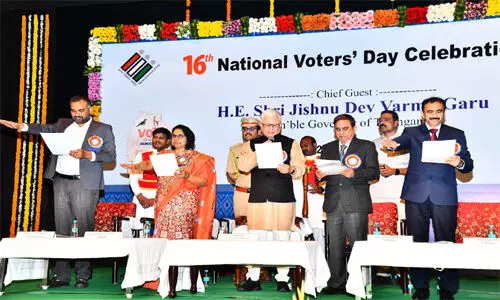 బాధ్యతతో, అవగాహనతో ఓటు హక్కును వినియోగించినప్పుడే ప్రజాస్వామ్య వ్యవస్థలు బలంగా నిలుస్తాయని రాష్ట్ర గవర్నర్ జిష్ణుదేవ్ వర్మ వ్యాఖ్యానించారు. రాజ్యాంగంలోని ఆర్టికల్ 324 ప్రకారం భారత ఎన్నికల సంఘానికి కల్పించిన స్వతంత్రత, నిష్పక్షపాతత్వమే స్వేచ్ఛాయుత, న్యాయసమ్మత ఎన్నికలకు పునాది అని పేర్కొన్నారు. ఆదివారం రవీంద్రభారతిలో జరిగిన 16వ జాతీయ ఓటర్ల దినోత్సవం రాష్ట్రస్థాయి కార్యక్రమంలో ఆయన ముఖ్య అతిథిగా పాల్గొన్నారు. ఈ కార్యక్రమంలో రాష్ట్ర ప్రధాన ఎన్నికల అధికారి సి. సుధర్శన్ రెడ్డి, రాష్ట్ర ఎన్నికల కమిషనర్ ఐ.రాణి కుముదిని, అదనపు సిఇఒ వాసం వెంకటేశ్వర్ రెడ్డి, జిహెచ్ఎంసి కమిషనర్, జిల్లా ఎన్నికల అధికారి ఆర్.వి. కర్ణన్ పాల్గొన్నారు. ఈ సందర్భంగా గవర్నర్ జిష్ణుదేవ్ వర్మ మాట్లాడుతూ, ఈ ఏడాది థీమ్ నా భారత్ – నా ఓటు పౌరులే భారత ప్రజాస్వామ్యానికి కేంద్ర బిందువు అని స్పష్టంగా తెలియజేస్తోందని చెప్పారు. భారత ఎన్నికల సంఘం స్థాపనను గుర్తుచేసుకుంటూ ప్రతి ఏడాది జనవరి 25న జాతీయ ఓటర్ల దినోత్సవాన్ని జరుపుకుంటున్నట్లు తెలిపారు. డాక్టర్ బి.ఆర్. అంబేడ్కర్, మహాత్మా గాంధీ వ్యాఖ్యలను ప్రస్తావిస్తూ సామాజిక ప్రజాస్వామ్యం లేకుండా రాజకీయ ప్రజాస్వామ్యం నిలవదని అన్నారు.