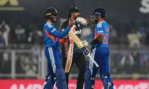 గౌహతి: న్యూజిలాండ్తో ఆదివారం గౌహతిలో జరిగిన మూడో టి20 మ్యాచ్లో ఆతిథ్య భారత జట్టు 8 వికెట్ల తేడాతో ఘన విజయం సాధించింది. ఈ గెలుపుతో టీమిండియా మరో రెండు మ్యాచ్లు మిగిలివుండగానే 30తో సిరీస్ను సొంతం చేసుకుంది. ముందుకు బ్యాటింగ్ చేసిన న్యూజిలాండ్ 20 ఓవర్లలో 9 వికెట్ల నష్టానికి 153 పరుగులు చేసింది. తర్వాత లక్షఛేదనకు దిగిన టీమిండియా 10 ఓవర్లలోనే కేవలం రెండు వికెట్లు మాత్రమే కోల్పోయి విజయాన్ని అందుకుంది. ఓపెనర్ సంజు శాంసన్ ఇన్నింగ్స్ తొలి బంతికే ఔటయ్యాడు. అయితే వన్డౌన్లో వచ్చిన ఇషాన్ కిషన్తో కలిసి మరో ఓపెనర్ అభిషేక్ శర్మ స్కోరును పరిగెత్తించాడు. ఇషాన్ ఈసారి కూడా మెరుపు ఇన్నింగ్స్తో అలరించాడు.