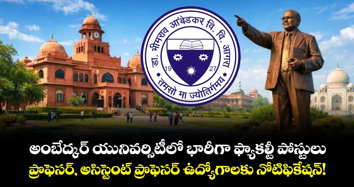 డాక్టర్ భీమ్రావ్ అంబేద్కర్ విశ్వవిద్యాలయం, ఆగ్రా (డీబీఆర్ఏయూ) ఫ్యాకల్టీ పోస్టుల భర్తీకి నోటిఫికేషన్ విడుదల చేసింది. ఆసక్తి, అర్హత గల అభ్యర్థులు ఆన్లైన్లో అప్లై చేసుకోవచ్చు.