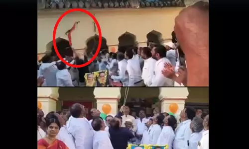 నారాయణ పేట: మంత్రి వాకిటి శ్రీహరికి పెను ప్రమాదం తప్పింది. నారాయణపేట జిల్లా మక్తల్ తహశీల్దార్ కార్యాలయంలో గణతంత్ర వేడుకల వేళ ప్రమాదం జరిగింది. జెండా ఆవిష్కరిస్తున్న సమయంలో ఒక్కసారిగా జెండా కర్ర విరిగిపడింది. అక్కడే ఉన్న మంత్రి వాకిటి శ్రీహరికి త్రుటిలో పెను ప్రమాదం తప్పింది. జెండా కర్ర విరిగిపడటంతో ఒకరు గాయపడ్డారు. వెంటనే అతడిని స్థానిక ఆస్పత్రికి తరలించారు. ఈ ఘటనతో సంఘటన స్థలంలో ఒక్కసారిగా కలకలం సృష్టించింది. భద్రతా లోపాలపై చర్చ జరగడంతో పాటు ఘటనపై అధికారులు విచారణ చేస్తున్నారు.