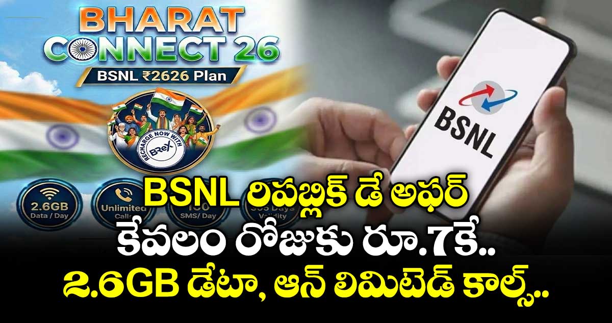 భారతదేశ 77వ గణతంత్ర దినోత్సవం(Republic Day) సందర్భంగా ప్రభుత్వ టెలికాం సంస్థ BSNL కస్టమర్ల కోసం ఒక కొత్త ప్రీపెయిడ్ రీఛార్జ్ ప్లాన్ను ప్రవేశపెట్టింది. కొత్తగా ప్రవేశపెట్టిన ఈ ప్లాన్ పేరు BSNL భారత్ కనెక్ట్ 26 ప్లాన్. లిమిటెడ్ అఫర్ కింద వస్తున్న ఈ ప్లాన్ వాలిడిటీ 365 రోజులు. BSNL సోషల్ మీడియా ద్వారా ఈ స్పెషల్ రిపబ్లిక్ డే రీఛార్జ్ ప్లాన్ను ప్రారంభించినట్లు ప్రకటించింది. ఈ ప్లాన్ గురించి వివరాలు మీకోసం…