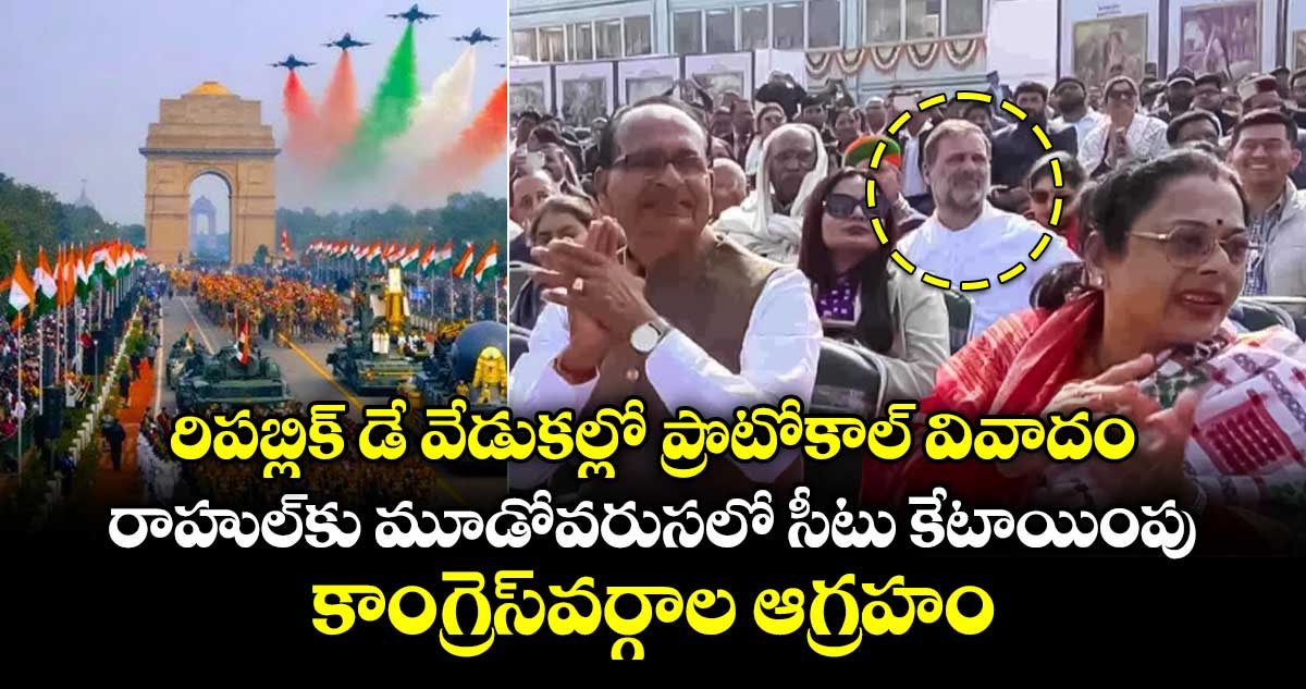 77వ రిపబ్లిక్ డే వేడుకల్లో ప్రతిపక్ష నేత, కాంగ్రెస్ఎంపీ రాహుల్గాంధీకి సీటు కేటాయింపుపై మరోసారి వివాదం తలెత్తింది. ప్రోటోకాల్ మరిచి ప్రతిపక్షనేతకు మూడో వరుసలో సీటు కేటాయించారని కాంగ్రెస్ వర్గాలు ఆగ్రహం వ్యక్తం చేశాయి. ప్రతిపక్ష హోదాలో ఉన్న వ్యక్తికి చిన్న పిల్లల మధ్య సీటు కేటాయించడం ప్రోటోకాల్ వివాదమే కాదు.. భద్రతకు సంబంధించిన నిర్లక్ష్యమని సోషల్ మీడియాలో కాంగ్రెస్ నేతలు ఆగ్రహం వ్యక్తం చేశారు. భారత దేశం ఎప్పటికీ మర్చిపోదు.. ఎప్పటికీ క్షమించదు అంటూ ట్వీట్లు చేశాయి కాంగ్రెస్ వర్గాలు.