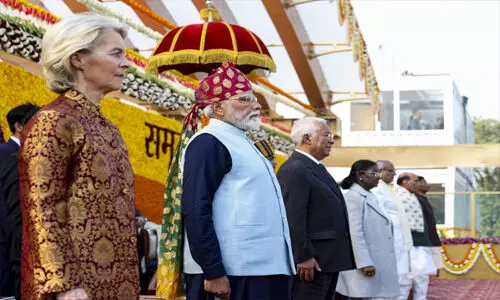 న్యూఢిల్లీ: సర్వసత్తాక, అతి పెద్ద ప్రజాస్వామిక భారతదేశం సోమవారం 77వ గణతంత్ర దినోత్సవంతో దేశ భక్తిని చాటుకుంది. ప్రధాన ఉత్సవం దేశ రాజధాని ఢిల్లీలో కనుల పండువగా పరేడ్తో సాగింది. ఉగ్రవాద ఉన్మాదంపై భారతీయ సైన్యం విరుచుకుపడ్డ ఘట్టం ఆపరేషన్ సిందూర్ త్రివర్ణ పతాకాల రెపరెపల మధ్య మరోసారి రాజధానిలోని కర్తవ్యపథ్లో కళ్లముందుకు తీసుకువచ్చారు. ఆపరేషన్ సిందూర్లో వీర భారతీయ సైన్యం వాడిన ఆయుధాలు, క్షిపణులు, యుద్ధ విమానాల శ్రేణులను ప్రదర్శించారు. ఈ ఏటి గణతంత్ర దినోత్సవం జాతీయ గీతం వందేమాతరం ఆవిష్కరణానికి 150 ఏండ్లు నిండిన ఘట్టం ప్రధాన ఇతివృత్తం అయింది. భారత దేశ సరిహద్దుల రక్షణకు ఆయువుపట్టు అయిన భారతీయ సైనిక పాటవానికి ప్రతీక సిందూర్ ప్రాధాన్యత సంతరించుకుంది. తెగబడి ఉగ్రవాద చర్యలకు దిగితే , వెంటబడి దెబ్బతీస్తామనే సిందూర్ సైనిక చర్య కేంద్ర బిందువు అయింది.