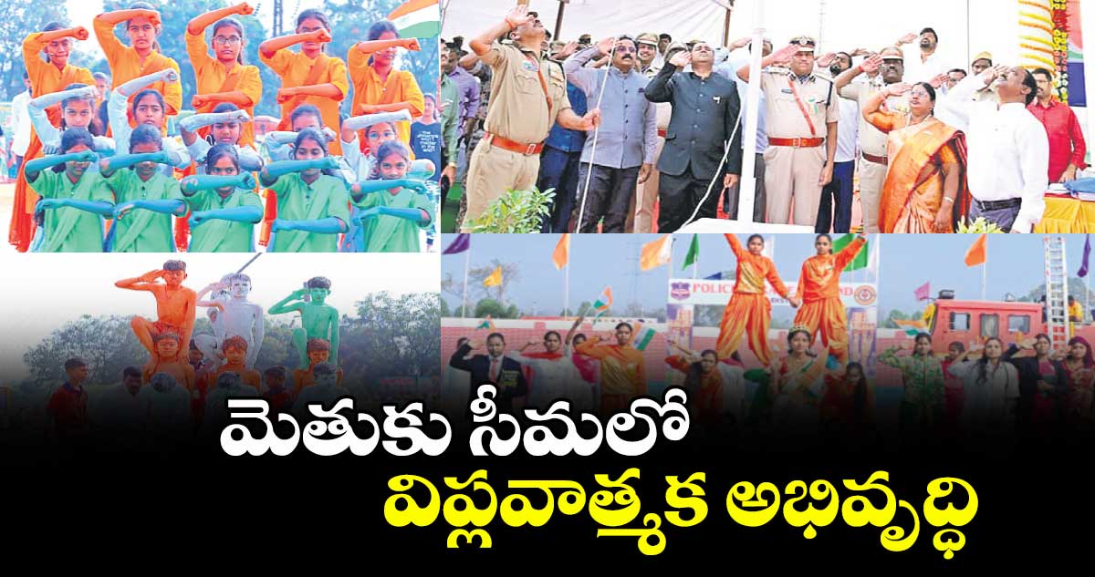 మెదక్, మెదక్ టౌన్, వెలుగు: ప్రభుత్వ పథకాల ద్వారా మెతుకు సీమలో విప్లవాత్మక అభివృద్ధి సాధించామని మెదక్జిల్లా కలెక్టర్ రాహుల్ రాజ్ తెలిపారు. సోమవారం పోలీస్ పరేడ్ గ్రౌండ్లో 77 రిపబ్లిక్ డే వేడుకలకు ముఖ్య అతిథిగా హాజరై జెండా ఆవిష్కరించారు. అనంతరం పోలీసుల గౌరవ వందనం స్వీకరించి వివిధ రంగాల్లో జిల్లా ప్రగతిని వివరించారు. మహాలక్ష్మి పథకం కింద ఇప్పటివరకు 3 కోట్ల 62 లక్షల సార్లు మహిళలు ఉచిత రవాణా సౌకర్యాన్ని వినియోగించుకున్నారని దీని ద్వారా వారికి రూ.126.57 కోట్ల లబ్ధి చేకూరిందన్నారు.