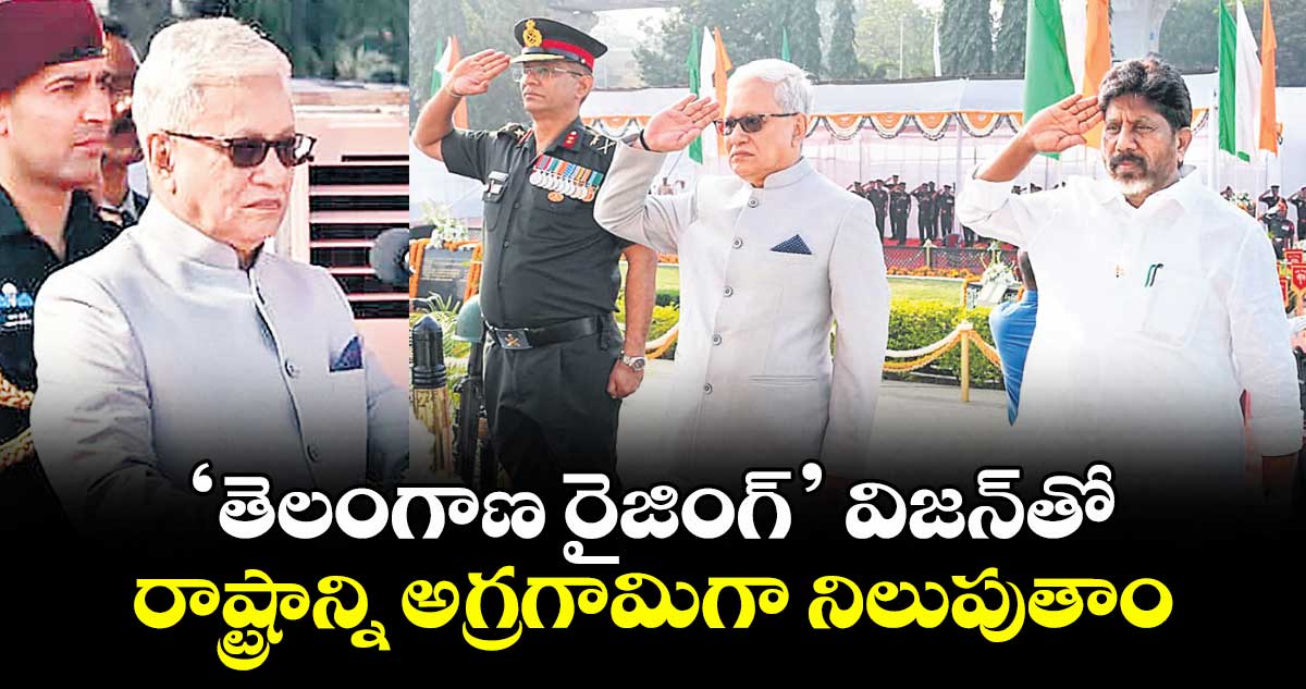 హైదరాబాద్, వెలుగు: రాష్ట్రంలోని ప్రజా ప్రభుత్వం రాజ్యాంగ స్ఫూర్తితో పరి పాలన సాగిస్తోందని.. సంక్షేమం, అభివృద్ధి జోడు గుర్రాల్లా పరుగులు తీస్తున్నాయని గవర్నర్ జిష్ణు దేవ్ వర్మ అన్నారు. సామాజిక న్యాయం, సమానత్వం పునాదులుగా ప్రజా ప్రభుత్వం అభివృద్ధి వైపు అడుగులు వేస్తోందని తెలిపారు. రాష్ట్ర ప్రభుత్వం ప్రతిష్టాత్మకంగా రూపొందించిన ‘తెలంగాణ రైజింగ్-2047’ విజన్ డాక్యుమెంట్ ద్వారా రాష్ట్రాన్ని ప్రపంచ పటంలో అగ్రగామిగా నిలబెట్టేందుకు కృషి చేస్తున్నామని తెలిపారు.
