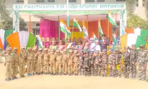 మన తెలంగాణ/మోత్కూర్. మోత్కూర్ మున్సిపాలిటీ పరిధిvలో,మందండలంలోని గ్రామాల్లో సోమవారం 77వ గణతంత్ర దినోత్సవాన్ని ఘనంగా నిర్వహించారు. ప్రభుత్వ, ప్రయివేటు కార్యాలయంలు విద్యా సంస్థలు, స్వచ్ఛంద సంస్థలు, యువజన సంఘాల కార్యాలయాల వద్ద జాతీయ జెండాలను ఎగురవేశారు. సాయి చైతన్య పాఠశాల, ఉన్నత పాఠశాలల్లో నిర్వహించిన విద్యార్థుల సాంస్కృతిక కార్యక్రమాలు అందరిని ఆకర్షించాయి. సెయింట్ అన్స్ పాఠశాల విద్యార్థులు పట్టణంలో ర్యాలీ నిర్వహించారు. తహసీల్దార్ పి. జ్యోతి, ఎంపీడీఓ బాలాజీ, సి ఐ వెంకటేశ్వర్లు,ఎస్ ఐ సతీష్,మార్కెట్ చైర్మన్ నూనేముంతల విమల వెంకటేశ్వర్లు, మార్కెట్ కార్యదర్శి వెంకట్ రెడ్డి,సీడీపీఓ యామిని, ఫైర్ ఆఫీసర్ బీముడు, ఉన్నత పాఠశాల ప్రధానోపాధ్యాయులు అరవిందరాయుడు,సాయి చైతన్య, సెయింట్ అన్స్, లిటిల్ ప్లవర్, అక్షర పాఠశాల ల ప్రిన్సిపాల్స్ ,కరస్పాండెంట్ లు బి.రవీందర్ రెడ్డి, పి.మరియన్న, సత్యనాద్, రాజిరెడ్డి, బి. కవిత, పి.విజయ, ఆర్య వైశ్య సంఘం అధ్యక్షుడు ఎం.సోమయ్య,పెయింటర్స్ యూనియన్ ఆఫయక్షుడు కృష్ణ, మిత్ర యూత్ అధ్యక్షుడు శ్రీశైలం, టి ఎం ఆర్పీఎస్ అధ్యక్షుడు బందెల శ్రీను,రాజకీయ పార్టీల నాయకులు, వివిధ సంఘాల నాయకులు పాల్గొన్నారు.