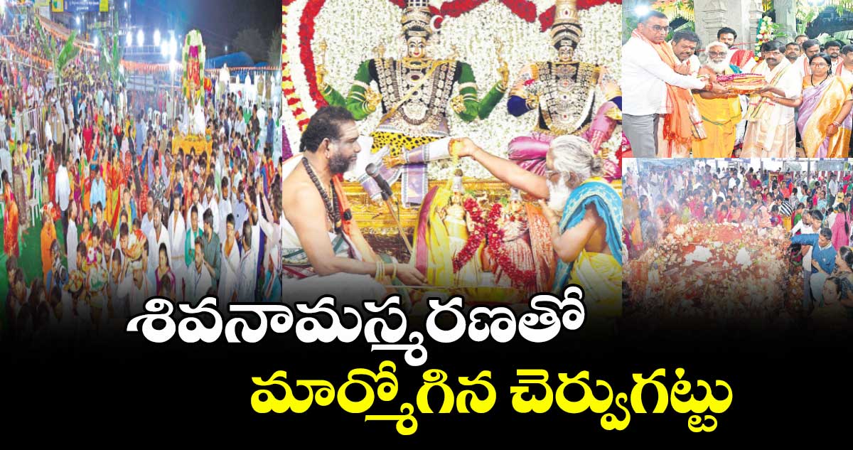 ముందుగా స్వామి అమ్మవార్ల ఉత్సవ విగ్రహాలను వృషభ వాహనంపై ఆలయ పురవీధుల గుండా ఊరేగించారు. లక్ష మంది పైగా భక్తులు హాజరై కల్యాణాన్ని తిలకించారు. కల్యాణాన్ని ఎక్కడికక్కడ తిలకించడానికి భారీ ఎల్ఈడీ స్క్రీన్స్ ఏర్పాటు చేశారు. అనంతరం భక్తులు స్వామిఅమ్మవారులకు ఒడి బియ్యం, తలంబ్రాలను సమర్పించడానికి కిలోమీటర్ల మేర బారులు తీరి మొక్కులు చెల్లించుకున్నారు. ఆలయ ప్రాంగణం శివనామ స్మరణతో మార్మోగింది. ఈ కల్యాణానికి శివసత్తులు ప్రత్యేక ఆకర్షణగా నిలిచారు.