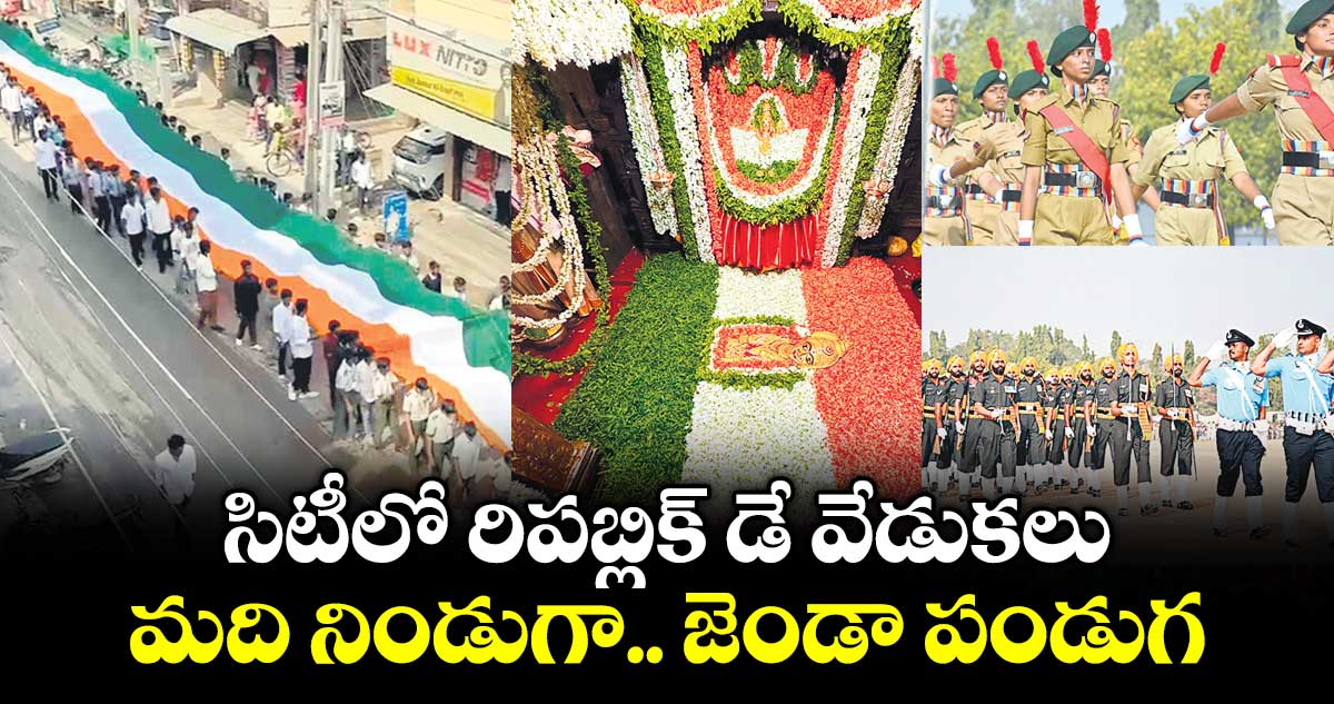 సిటీలో రిపబ్లిక్ డే వేడుకలు ఆదివారం ఘనంగా జరిగాయి. గవర్నమెంట్ ఆఫీసులు, స్కూళ్లు, కాలేజీలతో పాటు వాడవాడలా మువ్వన్నెల జెండా రెపరెపలాడింది. జీహెచ్ఎంసీ హెడ్ ఆఫీస్లో మేయర్ గద్వాల్ విజయలక్ష్మి, డిప్యూటీ మేయర్ శ్రీలతతో కలిసి కమిషనర్ కర్ణన్ జాతీయ జెండాను ఎగరవేశారు.