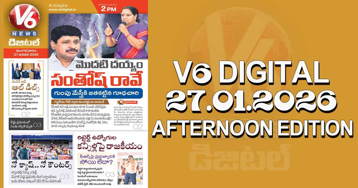 Reading Time: < 1 minute V6 DIGITAL 27.01.2026 AFTERNOON EDITION Caption of Image. మొదటి దయ్యం ఎవరో చెప్పిన మాజీ ఎమ్మెల్సీ కవిత నో క్యాష్.. నో కౌంటర్స్.. ప్రభుత్వ బ్యాంకుల్లో సేవలు బంద్! భారత్ ఈయూ మధ్య చారిత్రక ఒప్పదం ఇంకా మరెన్నో.. క్లిక్ చేయండి Post navigation రెండు నెలలక్రితమే వివాహం..సెల్పీ వీడియో తీసుకొని యువకుడి ఆత్మహత్య Kane Richardson: వరల్డ్ కప్తో పాటు 500 పైగా వికెట్లు: క్రికెట్కు రిటైర్మెంట్ ప్రకటించిన ఆస్ట్రేలియా ఫాస్ట్ బౌలర్