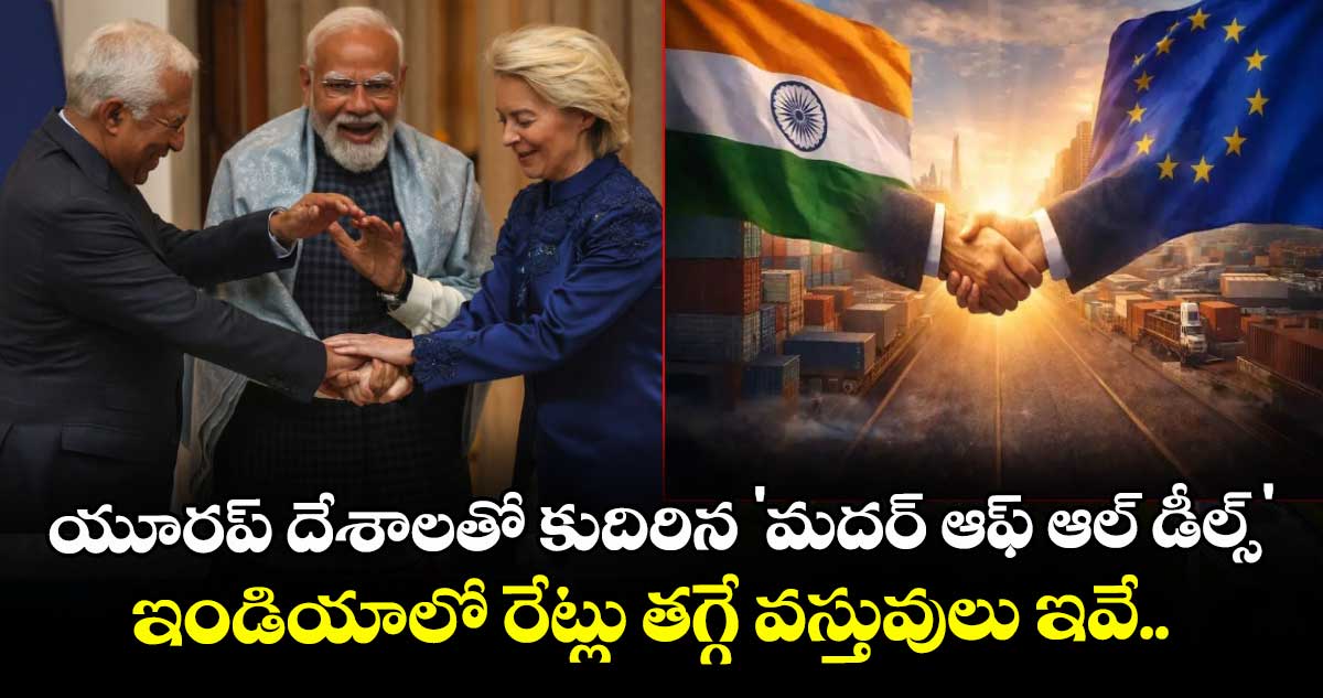భారతదేశ ఆర్థిక చరిత్రలో ఒక నూతన అధ్యాయం మొదలైంది. ప్రపంచంలోని రెండు అతిపెద్ద ఆర్థిక వ్యవస్థలైన భారత్, యూరోపియన్ యూనియన్ మధ్య కీలక ట్రేడ్ డీల్ కుదిరింది. ప్రధాని మోడీ, యూరోపియన్ కమిషన్ ప్రెసిడెంట్ ఉర్సులా వాన్ డెర్ లేయెన్ ఒప్పందంపై అధికారికంగా సంతకాలు చేశారు. ఇప్పుడు దీనిని ఆర్థిక నిపుణులు మదర్ ఆఫ్ ఆల్ డీల్స్గా పేర్కొంటున్నారు. ఈ ఒప్పందం కేవలం వ్యాపారాలకే కాకుండా, సామాన్య భారతీయ వినియోగదారులకు కూడా కొత్త అవకాశాలను, చాలా వస్తువులపై తగ్గిన రేట్ల వల్ల ప్రయోజనాలను తీసుకురానుంది.