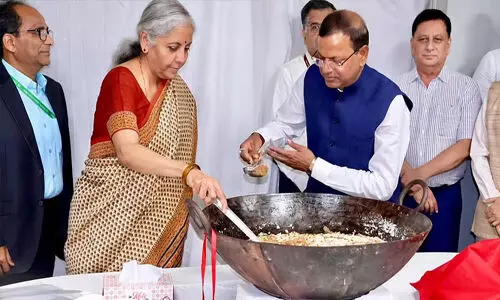 న్యూఢిల్లీ : ఫిబ్రవరి 1న ప్రవేశపెట్టబోయే కేంద్ర బడ్జెట్ తుది దశకు చేరుకుంది. ఈ సందర్భంగా మంగళవారం బడ్జెట్ హల్వా వేడుక నిర్వహించగా, ఈ కార్యక్రమంలో ఆర్థికమంత్రి నిర్మలా సీతారామన్ పాల్గొన్నారు. రైసినా హిల్లోని నార్త్ బ్లాక్లో ఈ హల్వా వేడుక నిర్వహించారు. ఈ వేడుక రోజున కేంద్ర బడ్జెట్ 202627 పత్రాల ప్రింటింగ్ను ప్రారంభిస్తారు. ప్రస్తుతం ఆర్థికమంత్రిత్వ శాఖ కార్యాలయాలు కార్తవ్య భవన్1కి మారినప్పటికీ, అక్కడ బడ్జెట్ ముద్రణ లేకపోవడంతో సంప్రదాయం ప్రకారం నార్త్ బ్లాక్లోనే హల్వా వేడుకను నిర్వహించారు. ఈ కార్యక్రమంలో కేంద్ర ఆర్థికశాఖ సహాయ మంత్రి పంకజ్ చౌదరి, ఆర్థికమంత్రిత్వ శాఖకు చెందిన అన్ని విభాగాల కార్యదర్శులు, ఇతర ఉన్నతాధికారులు పాల్గొన్నారు. బడ్జెట్ తయారీలో పాల్గొన్న అధికారులు, సిబ్బందికి నిర్మలా సీతారామన్ హల్వాను పంచారు. హల్వా వేడుక అనంతరం బడ్జెట్ తయారీలో ఉన్న అధికారులకు లాక్-ఇన్ పీరియడ్ ప్రారంభమవుతుంది. ఈ సమయంలో వారు బడ్జెట్ పూర్తయ్యే వరకు బయటి ప్రపంచంతో సంబంధం లేకుండా నార్త్ బ్లాక్లోనే ఉంటారు. బడ్జెట్ ప్రసంగం పూర్తయ్యాకే వారు బయటకు వస్తారు.