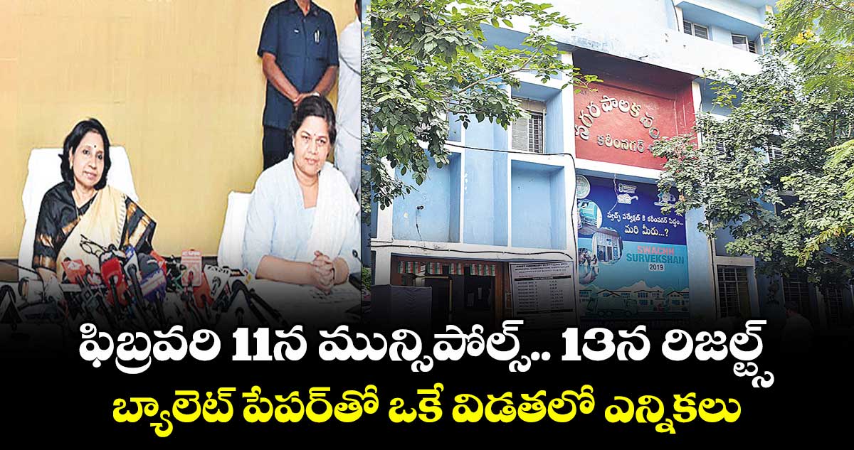 హైదరాబాద్, వెలుగు: మున్సిపల్ఎన్నికలకు నగారా మోగింది. రాష్ట్రంలో 7 కార్పొరేషన్లు, 116 మున్సిపాలిటీలకు ఫిబ్రవరి 11న ఎన్నికలు నిర్వహించనున్నట్లు రాష్ట్ర ఎన్నికల సంఘం కమిషనర్ రాణి కుముదిని మంగళవారం (జనవరి 27) ప్రకటించారు. 414 డివిజన్లు, 2,582 వార్డులకు సంబంధించిన షెడ్యూల్ రిలీజ్ చేశారు.