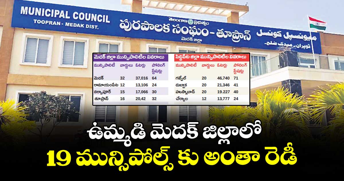 - ఉమ్మడి మెదక్ జిల్లాలో19 మున్సిపాలిటీలు
