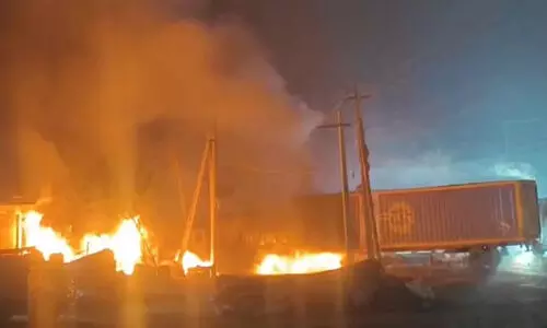అమరావతి: ఆంధ్రప్రదేశ్ రాష్ట్రం కాకినాడ జిల్లా కత్తిపూడి జాతీయ రహదారిపై ఘోర రోడ్డు ప్రమాదం జరిగింది. గురువారం తెల్లవారుజామున రెండు లారీలు ఢీకొనడంతో ఇంజన్ నుంచి మంటలు చెలరేగాయి. మంటల్లో రెండు లారీలు కాలిపోవడంతో ఒకరు సజీవదహనమయ్యారు. అన్నవరం వైపు నుంచి రాజమండ్రి వైపు చేపల ఫీడ్తో వెళ్తున్న లారీని వెనుకనుంచి కంటైనర్ లారీ బలంగా ఢీకొట్టడంతో ఈ ప్రమాదం జరిగింది. దీంతో ఒక్కసారిగా మంటలు చెలరేగటంతో రెండు లారీల క్యాబిన్లు అగ్నికి ఆహుతయ్యాయి. కంటైనర్ లారీలో ఉన్న క్లీనర్ సజీవ దహనమయ్యారు. లారీల డ్రైవర్లు సురక్షితంగా బయటపడ్డారు. ఫైర్ ఇంజన్ సిబ్బంది సంఘటన స్థలానికి చేరుకుని మంటలను అదుపు చేశారు. పోలీసులు కేసు నమోదు చేసి దర్యాప్తు చేస్తున్నారు. క్రేన్ సహాయంతో వాహనాలను పక్కకు తొలగించారు. రోడ్డుపై తీవ్ర ట్రాఫిక్ జామ్ ఏర్పడింది.