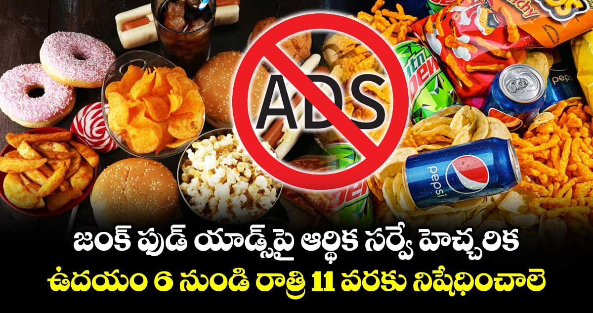 దేశంలో జంక్ ఫుడ్స్, అల్ట్రా ప్రాసెస్ చేసిన ఆహార పదార్థాల వాడకం ప్రమాదకర స్థాయికి చేరుకుందని ఆర్థిక సర్వే 2026 తీవ్ర ఆందోళన వ్యక్తం చేసింది. దీని కారణంగా దేశంలో ఒబెసిటీ సమస్య పెరగటం తద్వారా అనుబంధ వ్యాధులు పెరుగుతున్నాయని ఆందోళన వ్యక్తం చేసింది. ప్రజారోగ్యాన్ని కాపాడేందుకు ప్రభుత్వం విప్లవాత్మకమైన ప్రతిపాదనలు చేసింది. ముఖ్యంగా ఉదయం 6 గంటల నుంచి రాత్రి 11 గంటల వరకు టీవీలు, సోషల్ మీడియా, ఇతర డిజిటల్ ప్లాట్ఫారమ్లలో జంక్ ఫుడ్ యాడ్స్ పూర్తిగా నిషేధించాలని రిపోర్ట్ సూచించింది.