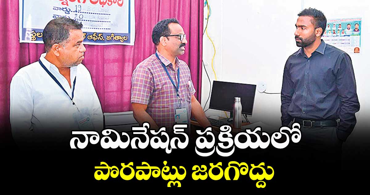 జగిత్యాల టౌన్, వెలుగు: నామినేషన్ ప్రక్రియ పకడ్బందీగా నిర్వహించాలని జగిత్యాల కలెక్టర్ సత్యప్రసాద్ ఆదేశించారు. జగిత్యాలలో మున్సిపల్ ఎన్నికల నామినేషన్ కేంద్రాన్ని పరిశీలించారు. ఈ సందర్భంగా నామినేషన్ల స్వీకరణకు చేసిన ఏర్పాట్లను పరిశీలించారు. ఎన్నికల సంఘం ఆదేశాల మేరకు నామినేషన్ల స్వీకరణలో ఎలాంటి పొరపాట్లు లేకుండా పూర్తిచేయాలని ఆదేశించారు.