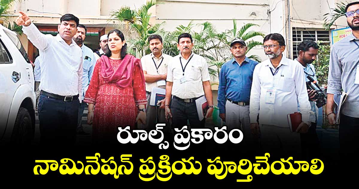కరీంనగర్ టౌన్/చొప్పదండి, వెలుగు: ఎన్నికల కమిషన్ నిబంధనలను తప్పకుండా పాటిస్తూ నామినేషన్ ప్రక్రియ పూర్తిచేయాలని జిల్లా ఎన్నికల అధికారి, కలెక్టర్ పమేలా సత్పతి అధికారులను ఆదేశించారు. గురువారం కరంనగర్ మున్సిపల్ కార్పొరేషన్లోని నామినేషన్ సెంటర్ను మున్సిపల్ కమిషనర్ ప్రఫుల్ దేశాయ్తో కలిసి హెల్ప్ డెస్క్, పోలీస్ బందోబస్తును పరిశీలించారు. ఎలాంటి పొరపాట్లు జరగకుండా నామినేషన్ల ప్రక్రియ పూర్తిచేయాలని ఆదేశిచారు. మున్సిపల్ ఎన్నికల్లో ఎలాంటి పొరపాట్లు లేకుండా పారదర్శకంగా ఎన్నికలు నిర్వహించేందుకు అధికారులు సమన్వయంతో పనిచేయాలని అన్నారు.