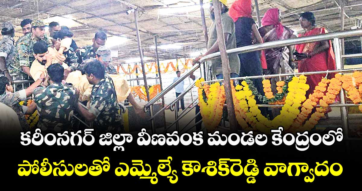 వీణవంక/ హుజూరాబాద్, వెలుగు: కరీంనగర్ జిల్లా వీణవంక మండల కేంద్రంలో సమ్మక్క–సారలమ్మ జాతరలో హుజూరాబాద్ ఎమ్మెల్యే కౌశిక్రెడ్డి పోలీసులతో వాగ్వాదానికి దిగారు. వివరాలిలా ఉన్నాయి.. వీణవంక మండలకేంద్రంలో నిర్వహించిన సమ్మక్క– సారలమ్మ జాతరకు ఎమ్మెల్యే కౌశిక్రెడ్డి కుటుంబసభ్యులతో కలిసి వచ్చారు. కోర్టు ఆదేశాల మేరకు దర్శనం చేసుకొని వెంటనే వెళ్లిపోవాలని పోలీసులు.. ఆయనకు సూచించారు.