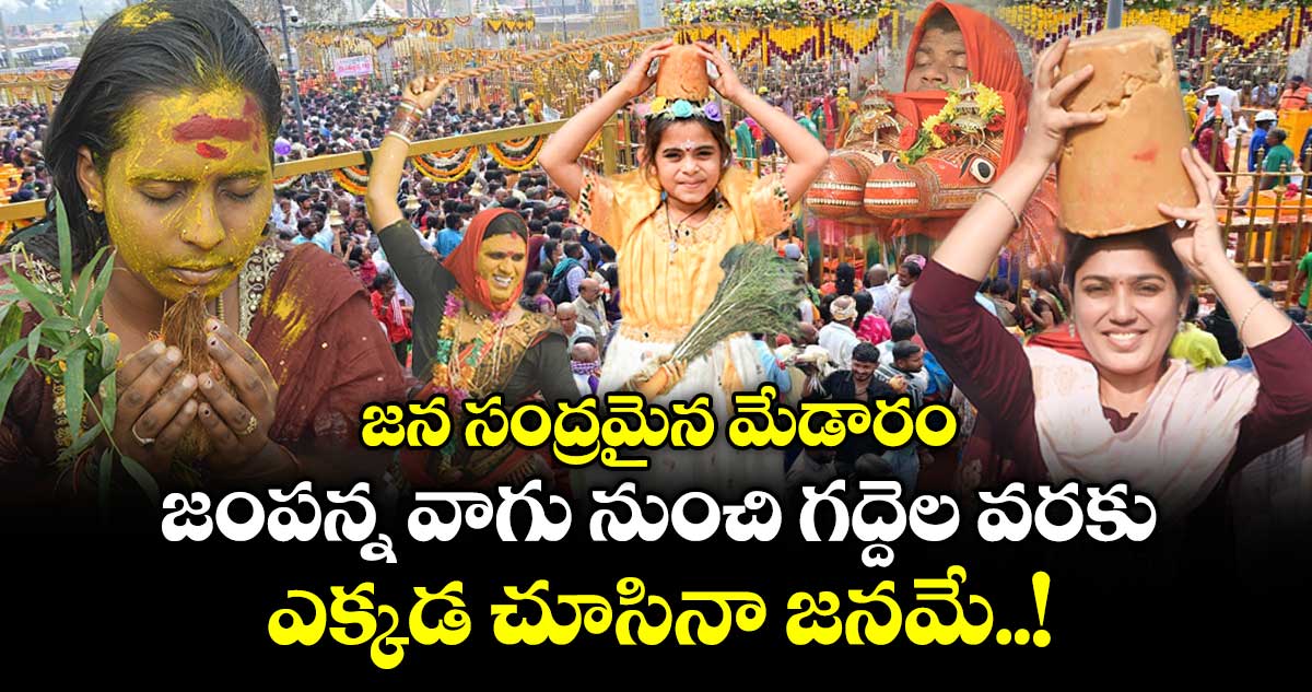 జంపన్న వాగు నుంచి సమ్మక్క, సారలమ్మల గద్దెల వరకు ఇసుకేస్తే రాలనంతా జనంతో మేడారం కిక్కిరిసిపోయింది. ప్రస్తుతం మేడారంలో ఎక్కడ చూసిన జనమే కనిపిస్తున్నారు. ఓ వైపు భక్తుల జై సమ్మక్క, సారలమ్మల నినాదాలు.. మరోవైపు శివసత్తుల పూనకాలతో మేడారం హోరెత్తుతోంది. లక్షల సంఖ్యలో తరలి వస్తుండటంతో మేడారంలో భారీగా ట్రాఫిక్ జామ్ నెలకొంది. భక్తుల రద్దీకి అనుగుణంగా అధికారులు ఏర్పాట్లు చేశారు.
