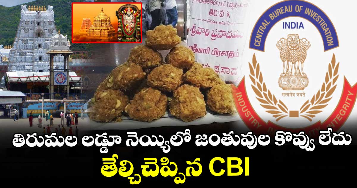 తిరుమల లడ్డూ కల్తీ ఆరోపణలపై విచారణ చేసిన సీబీఐ.. సెంట్రల్ బ్యూరో ఆఫ్ ఇన్వెస్టిగేషన్.. తన నివేదికను వెల్లడించింది. సుదీర్ఘ విచారణ తర్వాత.. తిరుమల వేంకటేశ్వరస్వామి ప్రసాదం లడ్డూ తయారీలో ఉపయోగించిన నెయ్యిలో.. జంతువుల కొవ్వు లేదని.. జంతువుల నుంచి తీసిన కల్తీ నెయ్యిని ఉపయోగించలేదని వెల్లడించింది సీబీఐ. జగన్ ప్రభుత్వం హయాంలో తిరుమల లడ్డూ ప్రసాదంలో వాడిన నెయ్యిలో.. జంతువుల కొవ్వు ఉందని స్వయంగా సీఎం చంద్రబాబు మాట్లాడిన మాటల తర్వాత.. కేసులు నమోదయ్యాయి. సీబీఐ విచారణకు జగన్ డిమాండ్ చేశారు. ఈ క్రమంలోనే సీబీఐ విచారణ చేసింది. విచారణ తర్వాత.. జగన్ ప్రభుత్వం హయాంలో తిరుమలలో తయారు చేసిన లడ్డూ ప్రసాదంలో ఎలాంటి జంతువుల కొవ్వు కలవలేదని.. కల్తీ జరగలేదని.. స్పష్టం చేస్తూ సీబీఐ రిపోర్ట్ ఇచ్చింది.