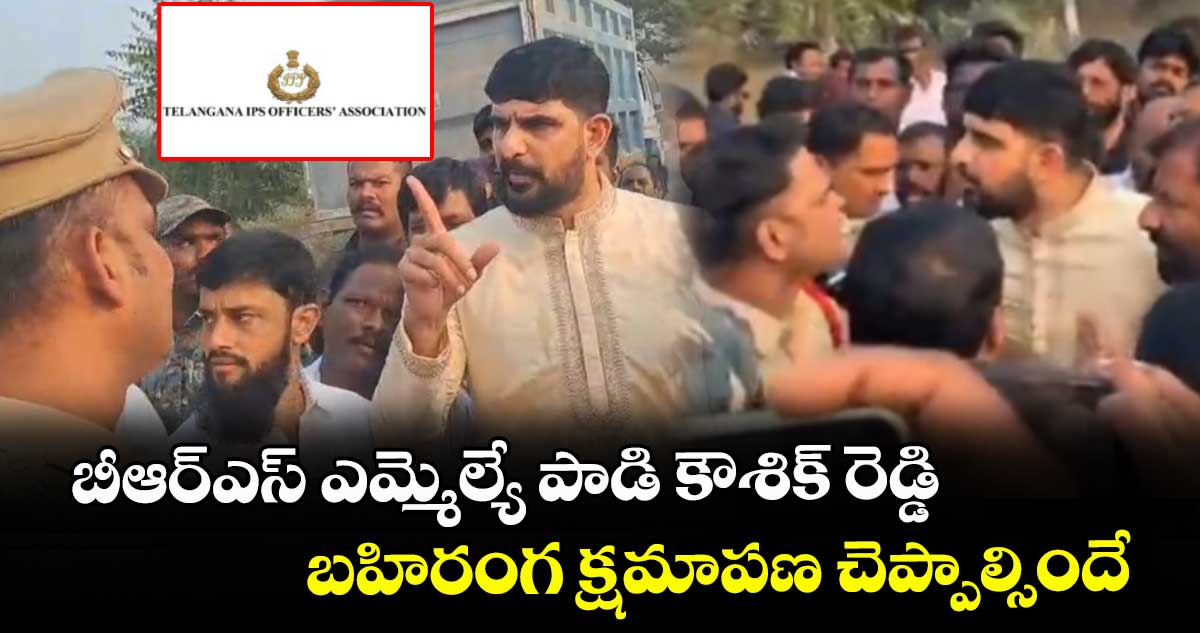 ఎమ్మెల్యే ప్రవర్తనపై తక్షణ విచారణకు డిమాండ్ చేసిన IPS అధికారుల సంఘం.. ఎమ్మెల్యే నుంచి బహిరంగ క్షమాపణ చెప్పాలని డిమాండ్ చేసింది. ప్రస్తుతం పనిచేస్తున్న అధికారి మతమార్పిడికి ప్రయత్నిస్తున్నారని తప్పుడు ఆరోపణలు చేస్తూ, అతని మతం గురించి చేసిన చౌకబారు ఆరోపణలతో తీవ్రంగా కలత చెందామని తెలిపింది. ఈ సంఘటనను పౌర సేవల నైతికత, గౌరవంపై తీవ్రమైన దాడిగా భావిస్తున్నామని..ఎమ్మెల్యే పాడి కౌశిక్ రెడ్డిపై అధికారులు తగిన చర్యలు తీసుకోవాలని కోరింది ఐపీఎస్ అధికారుల సంఘం.