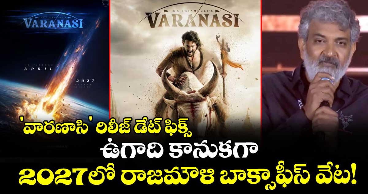 సూపర్ స్టార్ మహేష్ బాబు, దర్శకధీరుడు ఎస్ఎస్ రాజమౌళి కాంబినేషన్ లో వస్తున్న భారీ అడ్వెంచర్ మూవీ “వారణాసి”. ‘బాహుబలి’, ‘ఆర్ఆర్ఆర్’ వంటి చిత్రాలతో తెలుగు సినిమాను ప్రపంచ పటంలో నిలబెట్టారు జక్కన్న. ఇప్పుడు అంతకు రెట్టింపు అంచనాతో “వారణాసి” సినిమాను ప్రేక్షకుల ముందుకు తీసుకువచ్చేందుకు ముహూర్తం ఖరారు చేశారు. ఈ విజువల్ వండర్ ను ఏప్రిల్ 7, 2027న ప్రపంచవ్యాప్తంగా థియేటర్లలో గ్రాండ్గా విడుదల చేస్తున్నట్లు అధికారికంగా ప్రకటించారు.