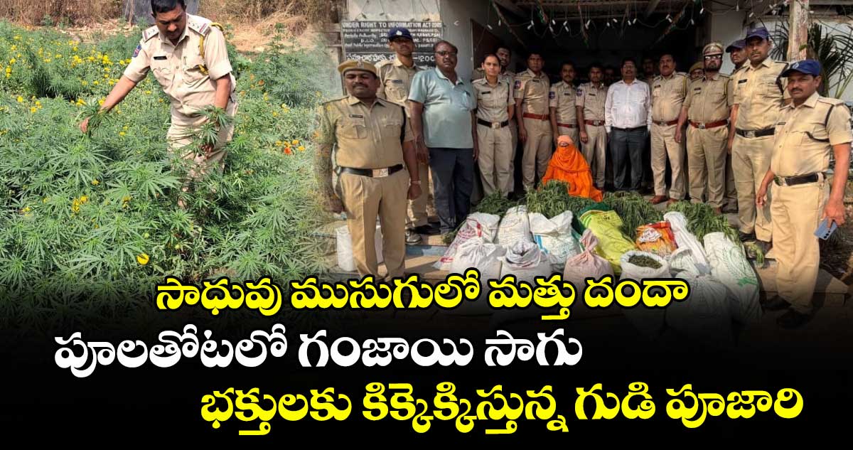 పూల వనంలో గంజాయి సాగు.. పూజారి ముసుగులో మత్తు దందా..గుడికి వచ్చే భక్తులను నాలుగు మంచి మాటలు చెప్పి మంచిమార్గంలో పెట్టాల్సిపోయి..మత్తు పదార్థాలతో కిక్కెక్కిస్తున్నాడు ఓ సాధువు. చుట్టూ నాలుగు ఊర్ల ప్రజలను నమ్మించి అక్రమంగా ఈ మత్తు దందా చేస్తున్న గురు మహారాజ్ కటకటాలు లెక్కపెడుతున్నాడు. వివరాల్లోకి వెళితే..