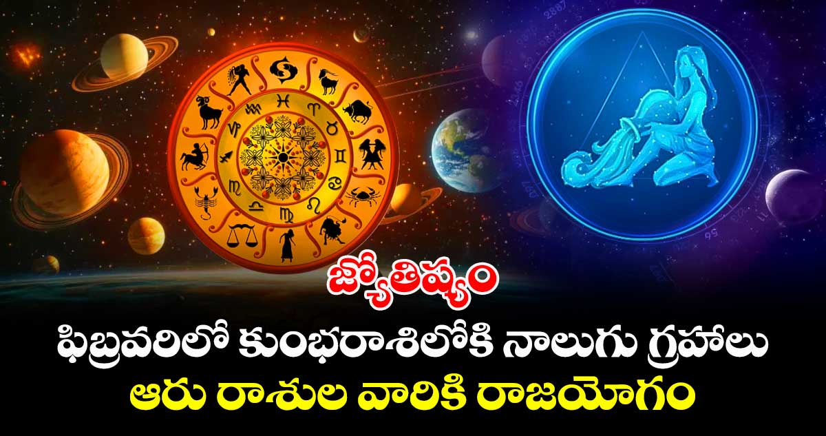 జ్యోతిష్య శాస్త్రం నక్షత్రాలు.. రాశుల ఆధారంగా గ్రహాల కదలికలను బట్టి పండితులు చెబుతుంటారు. ఈ గ్రహాలు తరచూ ఒక రాశి నుంచి మరోరాశిలోకి మారినప్పుడు జీవుల జీవనంపై ప్రభావం పడుతుందని నమ్ముతుంటారు. కొన్ని గ్రహాలు ఒకే రాశిలో కలిసినప్పుడు కొన్ని యోగాలు ఏర్పడుతాయి. 2026 వ సంవత్సరం ఫిబ్రవరి నెలలో రాజయోగం ఏర్పడనుందని పండితులు చెబుతున్నారు. కుంభరాశిలో చతుర్ గ్రహ కూటమి ఏర్పడుతుందంటున్నారు జ్యోతిష్య నిపుణులు. దీని ప్రభావం వలన ఆరు రాశుల వారికి రాజయోగం ఏర్పడుతుందని.. ( మేషం, వృషభం, మిథునం, తుల, మకరం, కుంభ ) వారికి అన్ని విధాలా కలసి వస్తుందని పండితులు చెబుతున్నారు. ఇప్పుడు ఆ వివరాలు తెలుసుకుందాం. . .